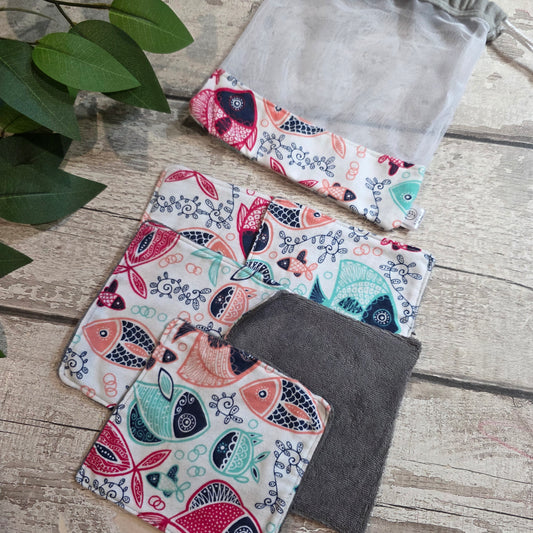 Lingettes Démaquillantes Lavables - Flanelle/Ratine avec Pochette Assortie