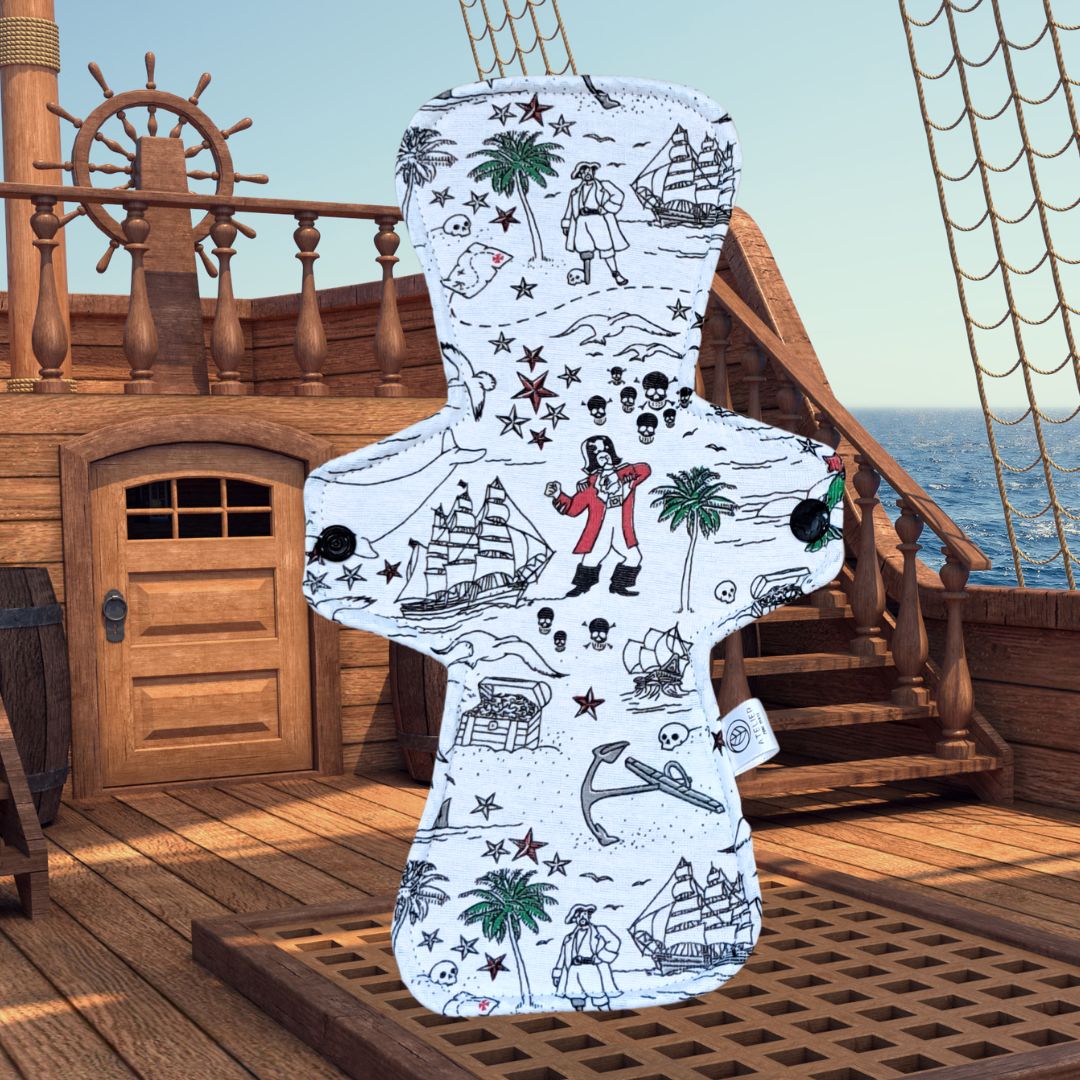 Y’en a pour qui les règles, c’est un océan de douleurs pis de fuites… mais pas avec Johnny DEEP! 😏 Inspirée du monde des pirates (les sexy, pas les malodorants), cette serviette te promet une aventure en eaux profondes, même quand le flux est intense.