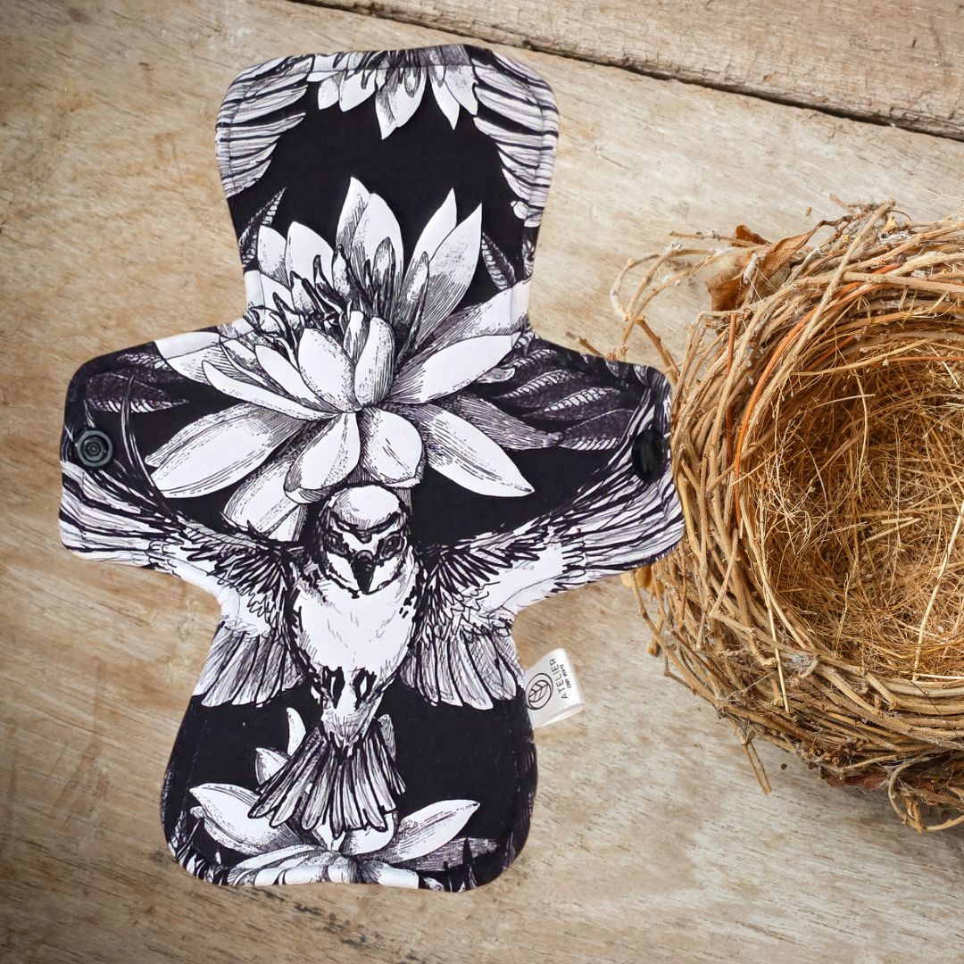 Avec son motif délicat d’oiseaux en plein vol, Éclat d’Ailes t’invite à prendre ton envol, même quand ton cycle voudrait t’alourdir. Parce que chaque battement d’ailes est un rappel que tu peux rester libre, légère et bien dans ta peau!