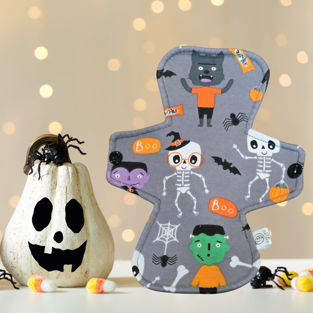 Avec ses adorables personnages d’Halloween, Parade Monstruelle transforme ta semaine rouge en carnaval de douceur monstrueuse. Un mélange de frissons, de fun et de confort, pour te rappeler qu’on peut affronter son cycle… avec style et sourire! 🧡