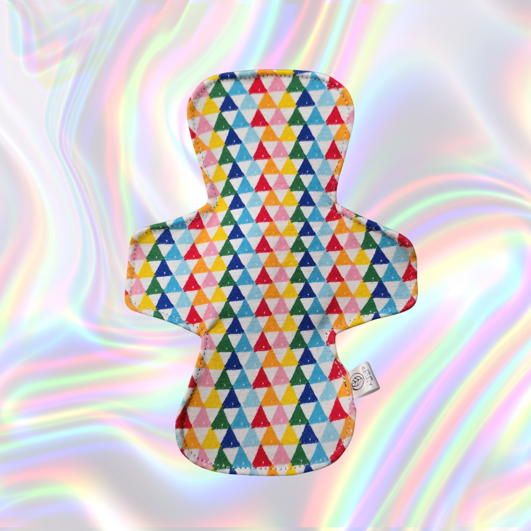 Avec son motif de triangles éclatants et vibrants, Prismacolore transforme tes règles en véritable explosion de couleurs. Chaque angle, chaque nuance te rappelle que ton cycle peut être audacieux, joyeux et plein de vie, même les jours où t’as l’impression que tout part en vrille. 😏