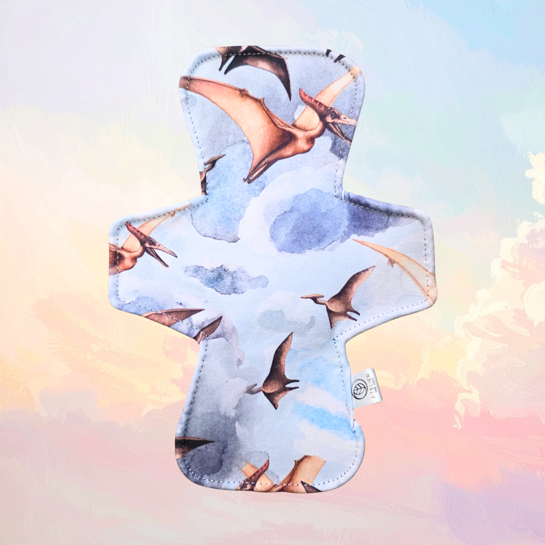 Avec son pterodactyle audacieux qui plane au-dessus des turbulences, Period-atcycle transforme ton cycle en véritable aventure jurassique. Même quand ton utérus joue à faire des loopings, ce motif funky te rappelle que tu peux garder ton style, ton confort… et ton humour! 😏