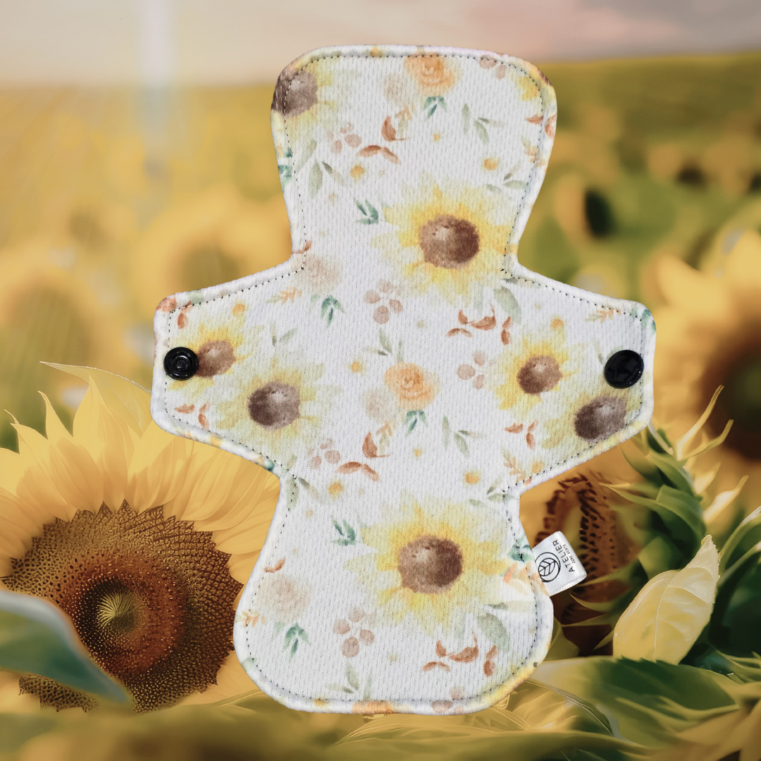 Ton sag menstruel a décidé de tourner la roue ? Pas de panique ! Ce tournesol te rappelle que tout finit par passer… surtout au lavage. Souris, même tes taches prennent des couleurs !